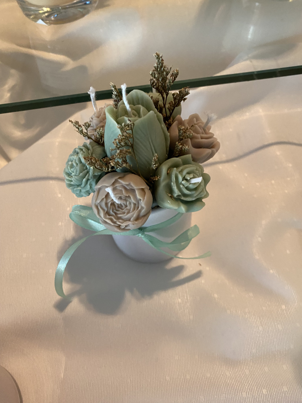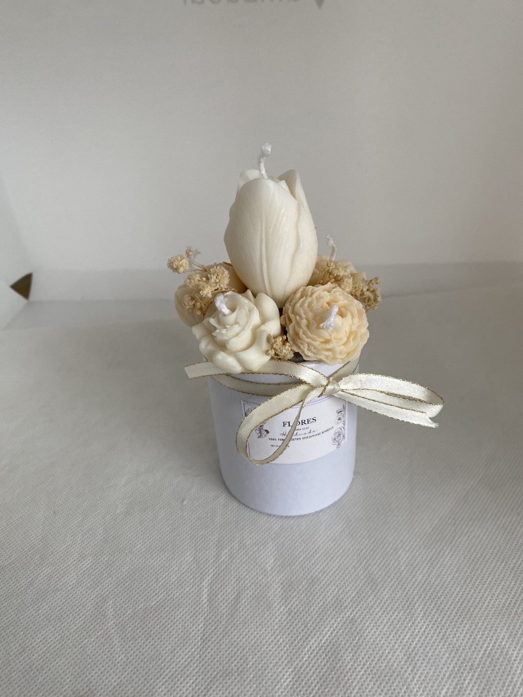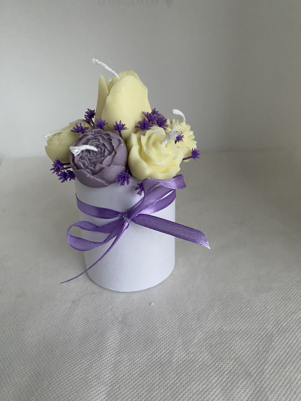 Ez a különleges, kézzel készült kicsi gyertyacsokor a virágok szépségét és a fény erejét egyesíti. Nem csupán egy ajándék, hanem a virágzás élménye, amely sosem hervad el.